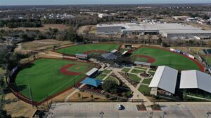 Travis Fields at Travis Bryan Midtown Park in Bryan, Texas, is a premier youth and amateur baseball and softball complex featuring three all-turf fields, batting cages, and tournament-ready amenities that anchor the city’s growing Midtown sports and entertainment district.